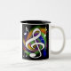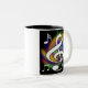 Taza de café de los amantes de la música con las notas del Clef agudo y de la música