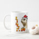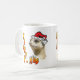 Esto es una taza de café muy bonita del meerkat del navidad. Tiene un gorra del navidad con las letras coloridas con nieve en ella.