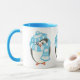 Un pingüino cálido y acogedor decora esta taza de café. El diseño es de una ilustración original.