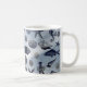 Taza de café de playa con vida marina y conchas náuticas.
