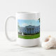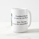 La taza tiene foto de la Casa Blanca y de estados: Presidente Obama, hombre para la gente. Gov. Romney, hombre para los beneficios corporativos. (un recordatorio de valores de los 2012 candidatos presidenciales.