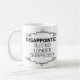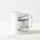 Un tazón de café clásico con un diseño que presenta la cita "Decepcionado pero ya no sorprendido" entre dos líneas decorativas. Los componentes del diseño se pueden cambiar, incluyendo el color y el contenido textual y las propiedades de texto. que permiten personalizar.