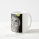 Taza de café alta con la foto del búho barrado.
