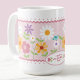 Sorprende a alguien especial con un regalo único para el Día de San Valentín. Esta taza de café presenta un diseño floral alegre, lunares juguetones, bordes con ribetes escalopados de moda y pájaros lindos para un toque caprichoso. Lo que distingue a esta taza es la capacidad de agregar un toque personal con texto personalizable. Expresa tu amor y aprecio con sentimientos como "Feliz Día de San Valentín" o "La Mejor Mamá del Mundo". Crea un regalo significativo para una mujer especial en tu vida.