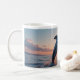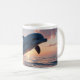 Un delfín bebé saltando al mar reflejado en el cielo de la puesta de sol