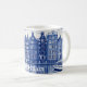 Coffee mug in a Delft Blue style with an image of Amsterdam. Generative content with photography by Velvet Escape.
