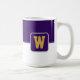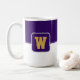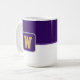 Aquí se muestra el tazón de café con un estilo de bloque de color impreso con una letra de muestra, personalizar y cambio de colores y letra o compra tal como está. Colores Púrpura, Blanco Personalizar este artículo o compra como está.