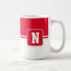 Aquí se muestra el tazón de café con un estilo de bloque de color impreso con una letra de muestra, personalizar y cambio de colores y letra o compra tal como está. Colores Rojos, Personalizar blanco este artículo o comprar tal como está.