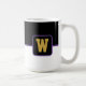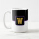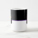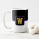 Aquí se muestra el tazón de café con un estilo de bloque de color impreso con una letra de muestra, personalizar y cambio de colores y letra o compra tal como está. Colores Púrpura Negra, Personalizar blanco este artículo o compra tal como está.