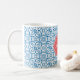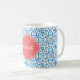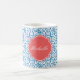 Mug Monograma Dazzling Blue Damask de diseño y adorable.