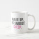 "Despierten. Golpea a Snooze. Duerme". tazón de café