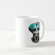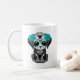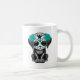 Características del este diseño lindas que un pequeño perrito negro adornó con el día de los modelos muertos. Los rosas azules aparecen en los oídos de perros mientras que una estrella de cinco puntos se sienta en el medio de la frente. La cara del perrito negro es blanco pintado y se adorna con remolinos y modelos de punto en la tradición del día de los cráneos muertos del azúcar. Los huesos blancos y una caja torácica aparece en el cuerpo del dog'd que le da una mirada esquelética. El cuerpo principal y pequeño clasificado excesivo junto con los detalles en la piel crea una combinación hermosa de un dibujo animado y de una mirada realista. Este perrito único y adorable es un día adorable del diseño muerto.