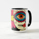 Esta taza de café tiene una imagen de una de mis pinturas llamadas "Rosa Mexicano." Mi inspiración para todo mi trabajo viene de mi país (México) y esto particularmente se inspira de la celebración de Dia de Muertos (día de los muertos). En esta celebración recordamos nuestros amores unos con felicidad y respecto.