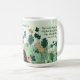 Celebre el feriado del Día de San Patricio con esta hermosa y caprichosa taza que muestra a una mujer tocando el violín rodeado de naturaleza, mucho verde con un pájaro, abejas voladoras, y una mariposa, y hojas de shamrock con una cita de San Patricio que puede ajustarse a su gusto. Puedes personalizar el saludo en la parte superior, y la cita en la parte posterior de la taza. Para obtener más productos con este diseño consulte nuestro ST. Colección de días de Patrick.
