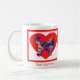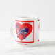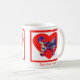 Silueta de perro Cockapoo con mariposas de neón rojo, azul y amarillo patrón abstracto en el corazón rojo. El regalo adorable con temática de perro puede ser personalizado con cualquier cosa en lugar de ‘mejor mamá de perro’ en ambos lados de la taza.