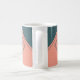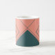 Esta taza básica presenta un diseño geométrico de dos tonos de salmón verde azulado y pálido, con un nombre de texto en el interior de un simple diamante de doble línea a ambos lados del mango. Personalice el nombre dentro del campo de texto. El cambio se producirá a ambos lados del asa.