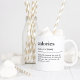 Esta minimalista taza cerámica presenta una definición de calorías en un diccionario de tipografía clásica en blanco y negro. ¿Qué son las calorías? De acuerdo con esta divertida toma, las calorías son "pequeñas criaturas furtivas que salen por la noche a cambiar los agujeros del cinturón, a tomar las piernas de la planta y a manipular la escala del baño". Un regalo desenfadado para cualquiera con sentido del humor sobre dieta, pérdida de peso o la eterna batalla con las calorías, perfecto para amigos, familiares o cualquiera que cuente calorías.