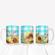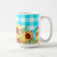 Taza De Café Diseño de girasoles y patrón de verificación azul