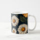 Mug lindo con patrón de margarita en un fondo azul profundo.