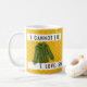 Este diseño presenta un divertido fondo amarillo dorado con puntos de polka blancos. "NO PUEDO MENTIR. I. AMOR. SUAVE. TIEMPO." Tipografía en la parte superior e inferior de la taza con un suéter verde.