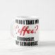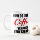 Taza de café linda que dice "cómo I toma mi café seriamente muy seriamente" en texto negro y rojo.