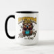 Un diseño de taza de café divertido de un oso que sostiene una taza de café y el texto Felicidad preparada en una taza