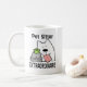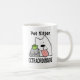 La taza de café divertida incluye gatitos, perros y un pequeño pájaro verde esperando a la niñera. Por la extraordinaria niñera mascota. Diseño original de S. Fernleaf Designs.