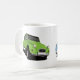 Mug Guay 2CV con dos imágenes de auto acornering diferentes, ambas imágenes en 29 opciones de color diferentes. Puedes elegir diferentes ilustraciones de dos colores. Ahora hay capas de coche azul y verde claro activas, haga clic en personalizar y oculte/publique los colores del coche que desee obtener. Otras imágenes de auto son volteadas en el editor. Cambia el estilo de la taza y el color de fondo o agrega tu propio texto.