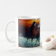 Aquí está una taza colorida de es dos caballos que se divierten en la playa, de una pintura original por Nancy Degan.