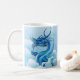 tazón de café en un violento dragón chino, en tonos índigo azul y blanco, saliendo de las nubes