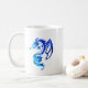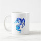 diseño de tatuajes tribales decorativos de un mítico dragón con acuarelas azul surrealista en una taza de café.