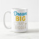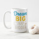 Este diseño lúdico incluye la frase divertida y relativa "Dream BIG, NAP BIGGER". Las palabras "Dream BIG" están en una fuente audaz y colorida, mientras que "NAP BIGGER" está en un estilo más ligero y delineado con una almohada pequeña e icono de taza de café. Este diseño es perfecto para todo aquel que ame dormir, dormir la siesta, o simplemente un buen sentido del humor. Es un lugar ideal para dormir, ponerse en forma o para decorar una casa.