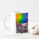 This isn't just a mug; it's a portable piece of magical realism! Featuring an eye-catching four-panel design that combines a cozy, colorful village reflection with vibrant, soft-focus abstract lights, this mug is perfect for anyone who loves unique, imaginative art. The design is printed brilliantly on a white, 11 oz ceramic mug. Use it daily or display it—it makes a phenomenal, one-of-a-kind gift for artists, fantasy lovers, or those who appreciate truly colorful accessories.