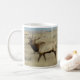 Taza Alce Toro Grande. Un gran alce toro camina orgullosamente a través de las praderas de finales de invierno.