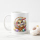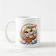 This ceramic coffee mug is shown with a cute Easter bunny print.