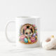 This ceramic coffee mug is shown with a cute Easter bunny print.