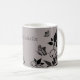 Mugre floral de mariposa dulce y delicado con un fondo gris sucio y polvoriento, mariposas ébano y adornos de viñas florales. Este elegante tazón floral es perfecto para tomar su bebida caliente favorita con un toque de chispa. Fácil de personalizar, simplemente agregue el texto personalizado de su elección en los campos de texto proporcionados. Haga clic en el botón "Personalizar" para encontrar opciones de personalización adicionales.