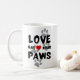 Nuestra taza de cerámica es un diseño inspirado en los amantes de los perros. Y decorado con ingenioso diseño y cita "el amor tiene cuatro patas". Tu bebida favorita en una taza fresca. Es ideal como regalo.