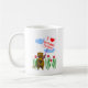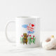 Un tazón de café con mi diseño de un pequeño castor sosteniendo un cartel que dice "Yo corazón el territorio Yukón".