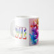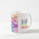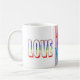 Un diseño de café Mug vibrante y juguetón con un cúmulo de corazones coloridos sobre un fondo rosado. El efecto salpicador y las formas variadas crean una composición dinámica y energética, perfecta para los amantes de los diseños atrevidos y expresivos.