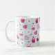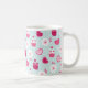 El día de San Valentín Candy Hearts Cupcakes Flowers Patrón en una taza de café blanca, taza de bebida.