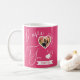 Esta taza de El día de San Valentín romántica y personalizada presenta un marco cardíaco y una foto de una pareja que puede ser reemplazada por su foto. También presenta un mensaje de "Te amo para siempre" en la parte delantera y una línea curvada de texto de "XOXO" corriendo a lo largo del corazón enmarcado. La parte posterior de la taza presenta un texto de "Amor" dentro del corazón inclinado y otra línea curvada de texto de "XOXO" que recorre el costado del corazón distorsionado. Todo el texto se puede editar para un regalo personalizado. Este mensaje romántico de amor es perfecto para compartirlo con tu pareja significativa. Feliz Día de San Valentín.
