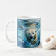 Espejo Ártico: El Monarca Nadador. Una impresionante imagen de un majestuoso oso oso polar emergiendo del agua helada, capturado en trazos fluidos estilizados de acuarela. La interacción de la luz y el agua crea un efecto etéreo, como si el oso polar existiera entre dos mundos: la realidad y el sueño.