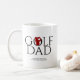 La moderna y fresca taza de café con un prominente encabezado "GOLF DAD" en la tipografía minimalista y una silueta dorada incrustada en el texto. Personalizable áreas de texto bajo encabezados. Idea de regalo perfecta para tu golfista favorito. Ideal para Navidades, Día del Padre, cumpleaños o cualquier día.