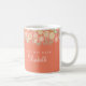 Chef, moda rústica vintage personalizada; tazón de café con delicados tonos rosas, crema de pavo y flores silvestres florales de color verde sabio, bordea un fondo de naranja de coral (cambiable). +++++++++++++ Puede ser un hermoso regalo personalizado para un amante gourmet de la cocina, por un aniversario, cumpleaños, Navidades, una ducha de novia o un regalo de boda.