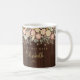 Chef, moda rústica vintage personalizada; tazón de café con delicados tonos rosas, crema de pavo y flores silvestres florales de color verde sabio, bordea un fondo de madera marrón oscura con luces de cuerda. +++++++++++++ Puede ser un hermoso regalo personalizado para un amante gourmet de la cocina, por un aniversario, cumpleaños, Navidades, una ducha de novia o un regalo de boda.