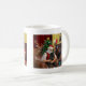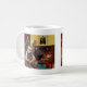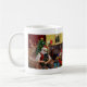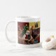 Santa en casa con su Pug negro, relajándose frente al fuego antes de la gran noche. Noten a Mona Lisa sobre el manto sosteniendo al mismo perro.