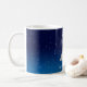 elefante lindo con gorra rojo y bolsa con regalos de Navidades sobre fondo azul con copos de nieve blancos