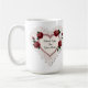 A decorative heart-shaped card featuring a burgundy border, pink floral accents, and two red roses, perfect for romance, weddings, or Valentine’s Day greetings.
