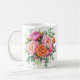 Start every morning with timeless floral beauty. This elegant ceramic coffee mug features soft watercolor-style pink and orange peonies with lush green leaves for a romantic, cottage-inspired look.